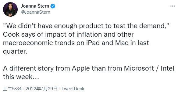 与此同时,苹果也报告了其 Mac 销量减少了大约 10% —— 即便 CEO 蒂姆·库克暗示该公司只是清完了 Mac 库存。